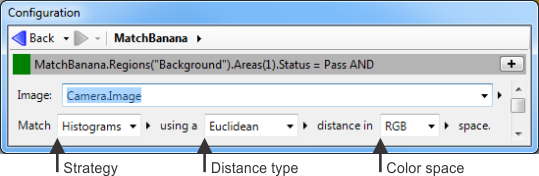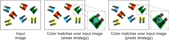 Specify the strategy with which to match a color by setting the Match property to Areas, Pixels, or Histograms.