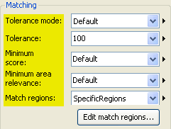 The match settings allow you to define the tolerance, minimum score, minimum area relevance, and regions of the match.