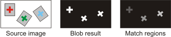 Use an image result from another step, such as the BlobAnalysis step or the ImageProcessing step, by selecting it from the Labeled image property in the Configuration pane. In this case, ensure that the Match regions property is set to LabeledImage. The non-zero pixel areas in the specified image represent the match regions. Note that disconnected areas with the same pixel value are considered as a single match region.